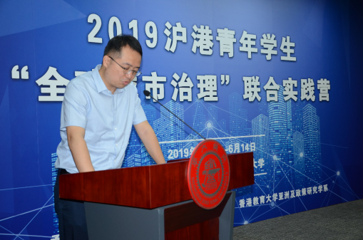 2019年6月10日,由必赢中国官方网站、香港教育大学亚洲及政策研究学系联合举办的2019沪港青年学生“全球城市治理”联合实践营开营仪式在徐汇校区新建楼319报告厅举行。上海交大港澳台办公室副主任姚雪、上海交大国务学院院长助理魏英杰、香港教育大学亚洲及政策研究学系蔡俊威以及65名联合实践营营员共同参与开营仪式。开营仪式由上海交大国务学院团委书记李锦红主持。