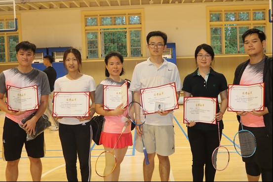 最后,谢培文老师为获奖选手和队伍颁发荣誉证书和奖品,参赛选手与工作人员合影留念,选手们纷纷对工作人员的辛勤付出表示感谢。“国翼杯”羽毛球赛不仅集中展现了国务学院学生积极向上的精神面貌,还增强了同学凝聚力、提升了竞争意识。我们期待学院能举办更多精彩纷呈的活动,丰富同学们的业余生活。
