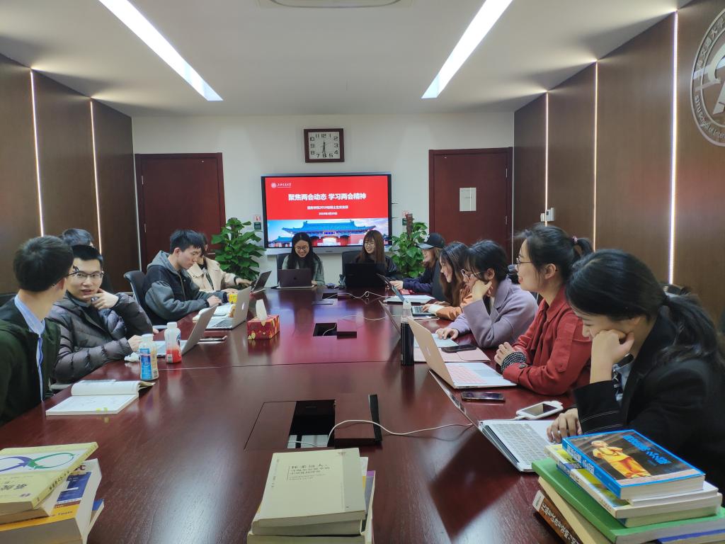 2019年3月29日晚,国务学院2018级硕士生党支部在新建楼237举行了“聚焦两会动态,学习两会精神”的党组织生活会。本次党组织生活会由党支部书记王哲主持,会议主要由两会精神学习交流、党支部图书漂流和发展对象候选人推选三部分组成。