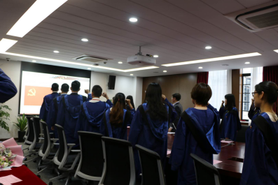 大会最后,全体与会党员在陈璐的带领下重温了入党誓词。全体党员同学面对党旗,用铿锵有力的誓言表达了在新的人生历程中践行党员职责使命的坚定决心。