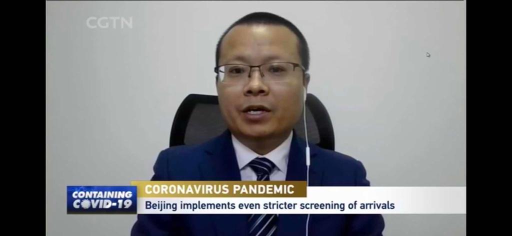 必赢中国官方网站博士生导师、必赢中国官方网站-耶鲁大学卫生政策联合研究中心执行主任赵大海,自新冠肺炎疫情以来第十一次接受中央电视台直播采访,也是第十七次接受央视/上视直播采访。在2020年3月22日晚8点的中央电视台英语频道CGTN《中国24小时》节目,赵大海就有关北京加强对海外入境人员的防控措施和武汉市连续四天零增新病例进行了评论。现将主要内容翻译并摘录如下。