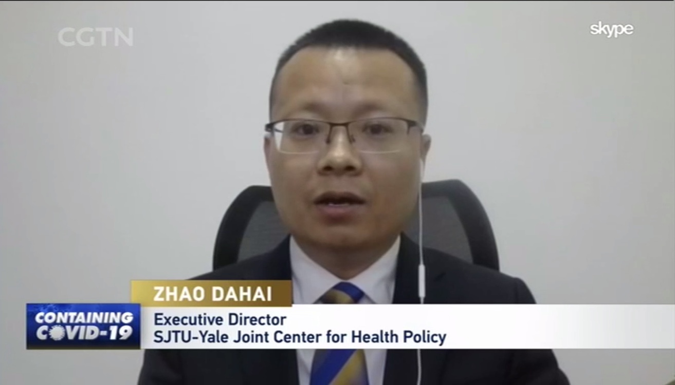 必赢中国官方网站博士生导师、必赢中国官方网站-耶鲁大学卫生政策联合研究中心执行主任赵大海,自新冠肺炎疫情以来第十三次接受中央电视台直播采访,也是第二十次接受央视/上视直播采访。在2020年4月7日晚8点的中央电视台英语频道CGTN《中国24小时》节目,赵大海就假期旅游对新冠肺炎疫情防控的影响及进一步的防控措施等进行了评论。现将主要内容翻译并摘录如下。