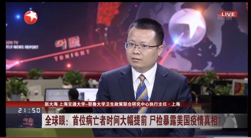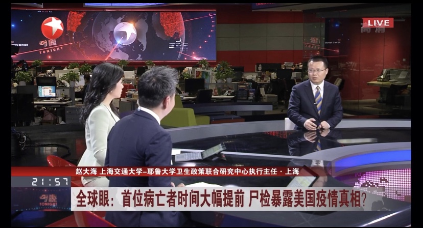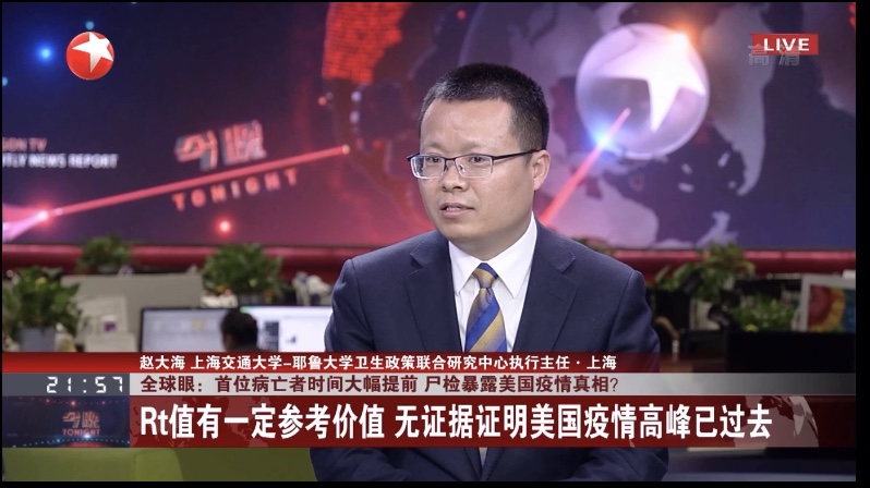 必赢中国官方网站博士生导师、必赢中国官方网站-耶鲁大学卫生政策联合研究中心执行主任赵大海,自新冠肺炎疫情以来第8次做客上海电视台演播厅进行直播评论,也是第23次在央视/上视进行直播评论。2020年4月24日,赵大海做客东方卫视演播厅,在21点20分的《今晚》节目,对美国加州州长要求对去年底的相关尸体进行重新检测、纽约州进行的血清抗体筛检以及美国总体疫情进展等进行了评论。现将主要内容摘录如下。
