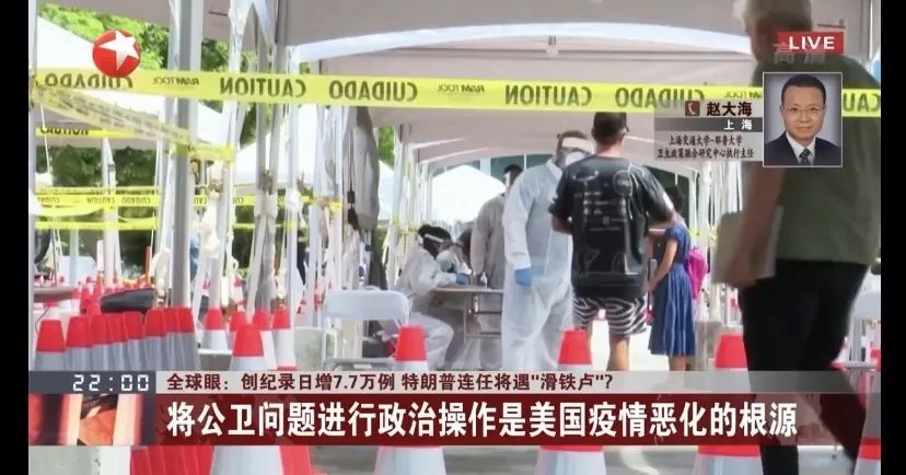 必赢中国官方网站博士生导师、必赢中国官方网站-耶鲁大学卫生政策联合研究中心执行主任赵大海,对于新冠肺炎疫情暴发与防控第18次在上海电视台进行评论,也是第45次在央视、上视进行访谈评论。在2020年7月17日,赵大海在东方卫视的《今晚》节目,就美国新冠肺炎疫情一天的新增病例突破7万等进行了直播评论。现将访谈内容摘录如下。