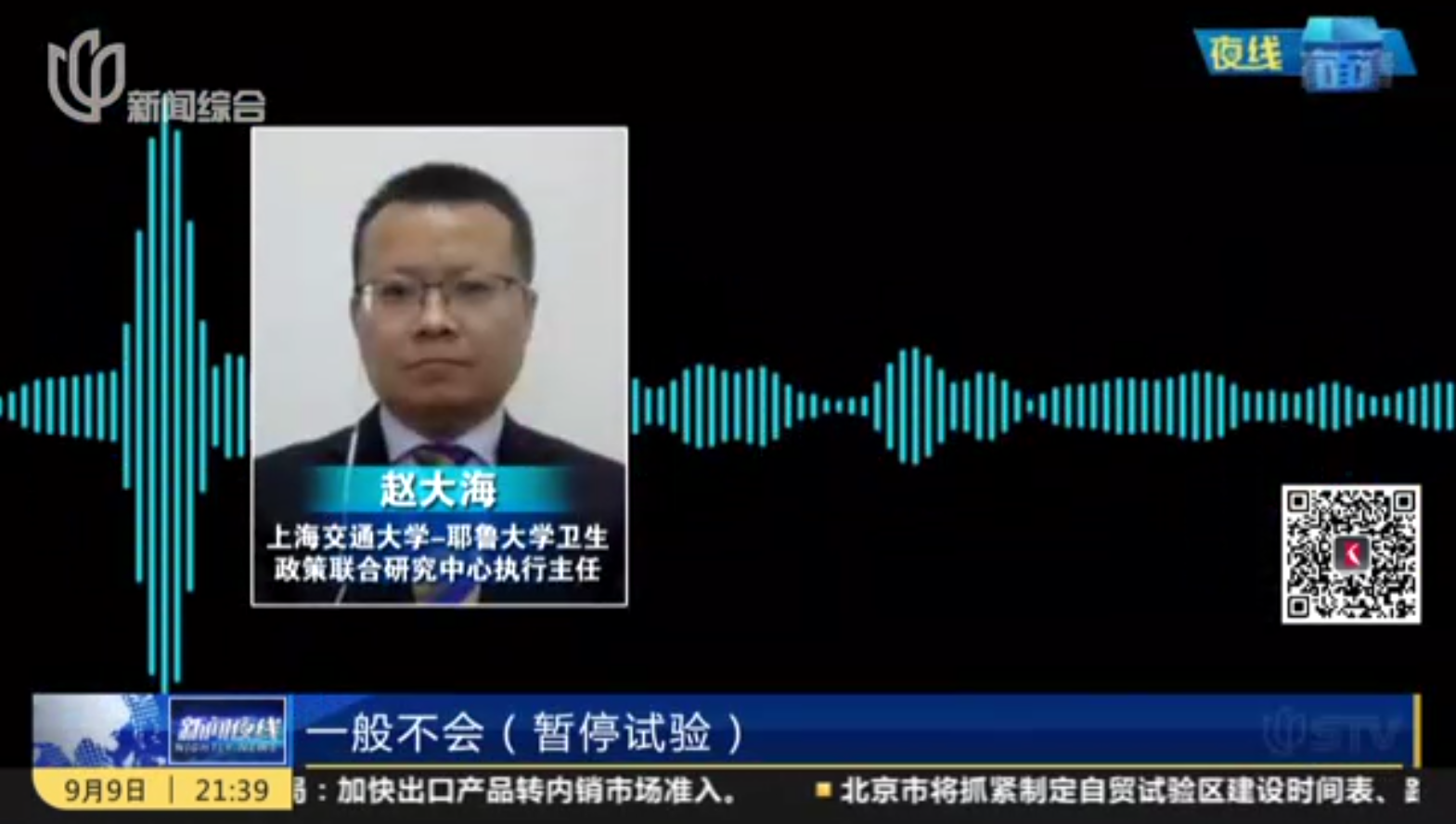必赢中国官方网站博士生导师、必赢中国官方网站-耶鲁大学卫生政策联合研究中心执行主任赵大海,自新冠肺炎疫情暴发以来,对于新冠疫情暴发、防控以及医疗卫生体制改革第20次在上海电视台进行访谈评论,也是第51次在央视、上视进行访谈评论。在2020年9月9日,赵大海在上海电视台新闻综合频道的《新闻夜线》节目,就牛津大学和阿斯利康决定暂停新冠疫苗实验进行了访谈评论。现将访谈内容摘录如下。