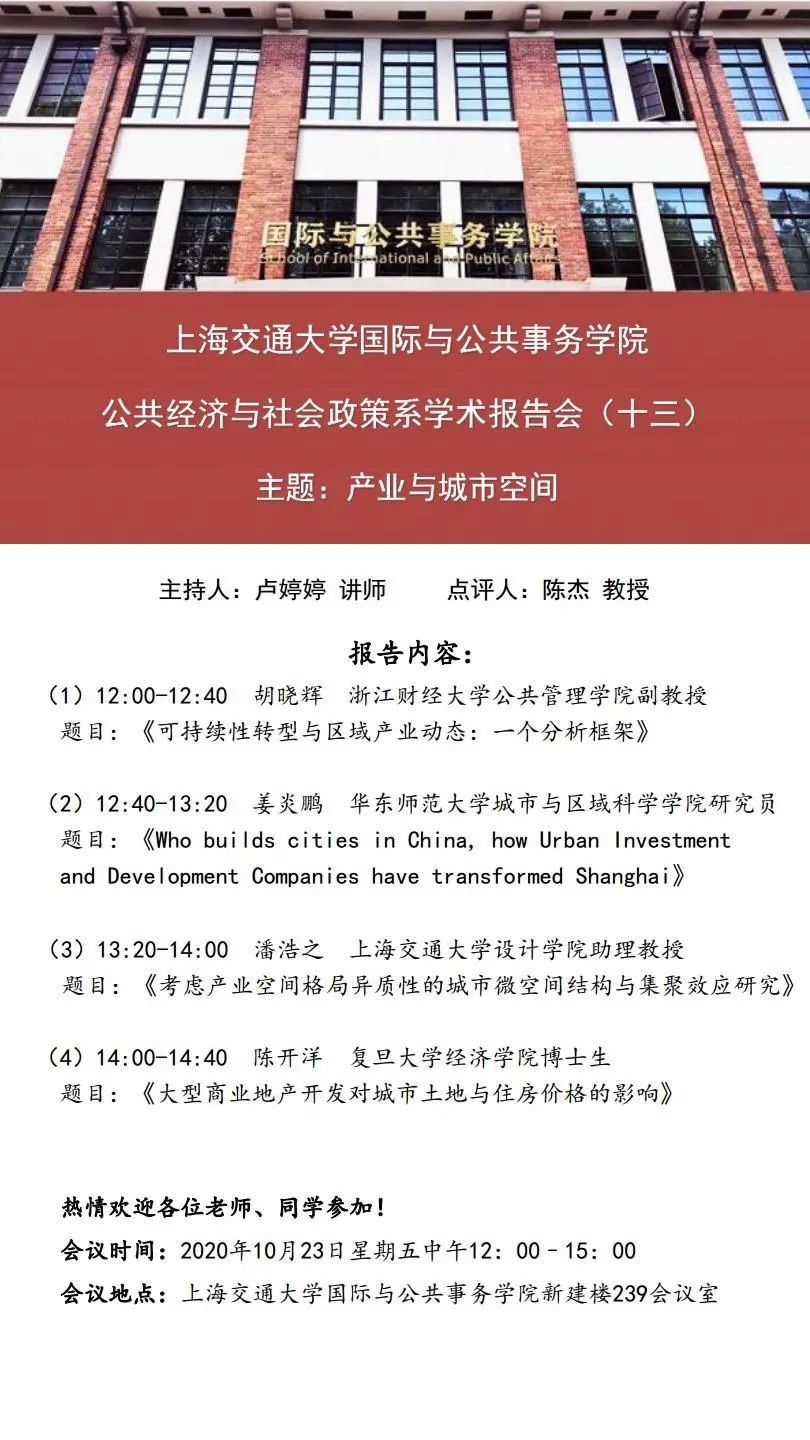 公共经济与社会政策系学术报告(十三)——产业与城市空间