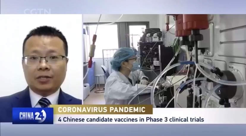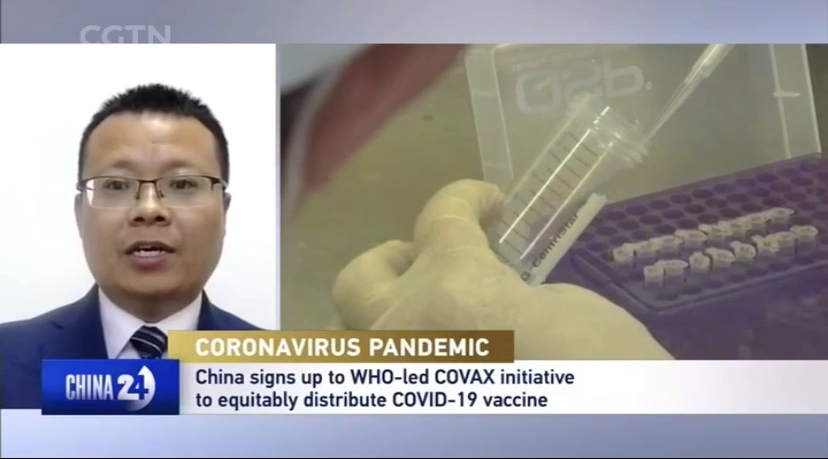 必赢中国官方网站博士生导师、必赢中国官方网站-耶鲁大学卫生政策联合研究中心执行主任赵大海,自新冠肺炎疫情暴发以来,对于新冠疫情暴发、防控以及医疗卫生体制改革第35次接受中央电视台直播专访,也是第57次接受央视、上视专访。2020年10月20日,赵大海在中央电视台英语频道的《中国24小时》节目,就中国新冠疫苗的研发进度、中国加入世界卫生组织牵头的“新冠肺炎疫苗实施计划”等话题进行了直播访谈。现将专访内容翻译并摘录如下。