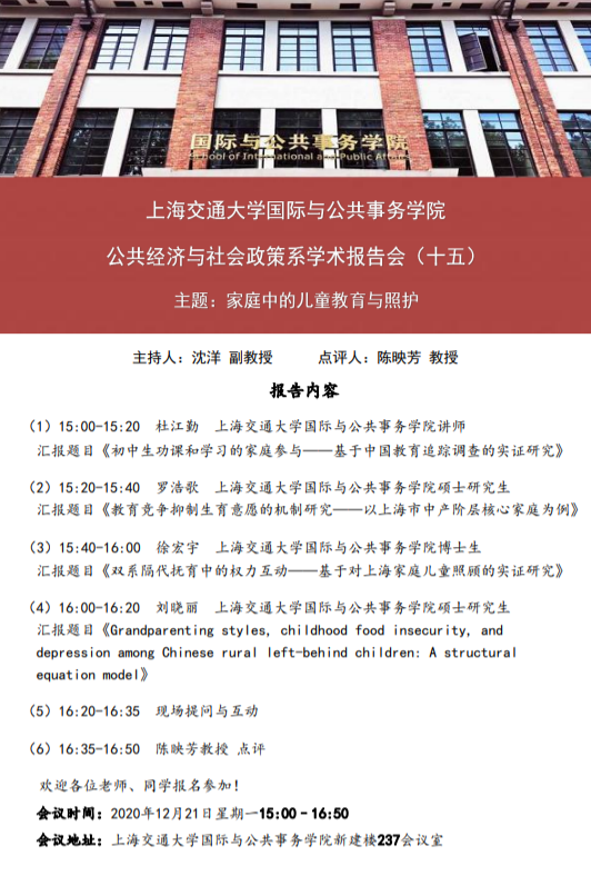 【讲座通知】必赢中国官方网站公共经济与社会政策系学术报告(十五):家庭中的儿童教育与照护