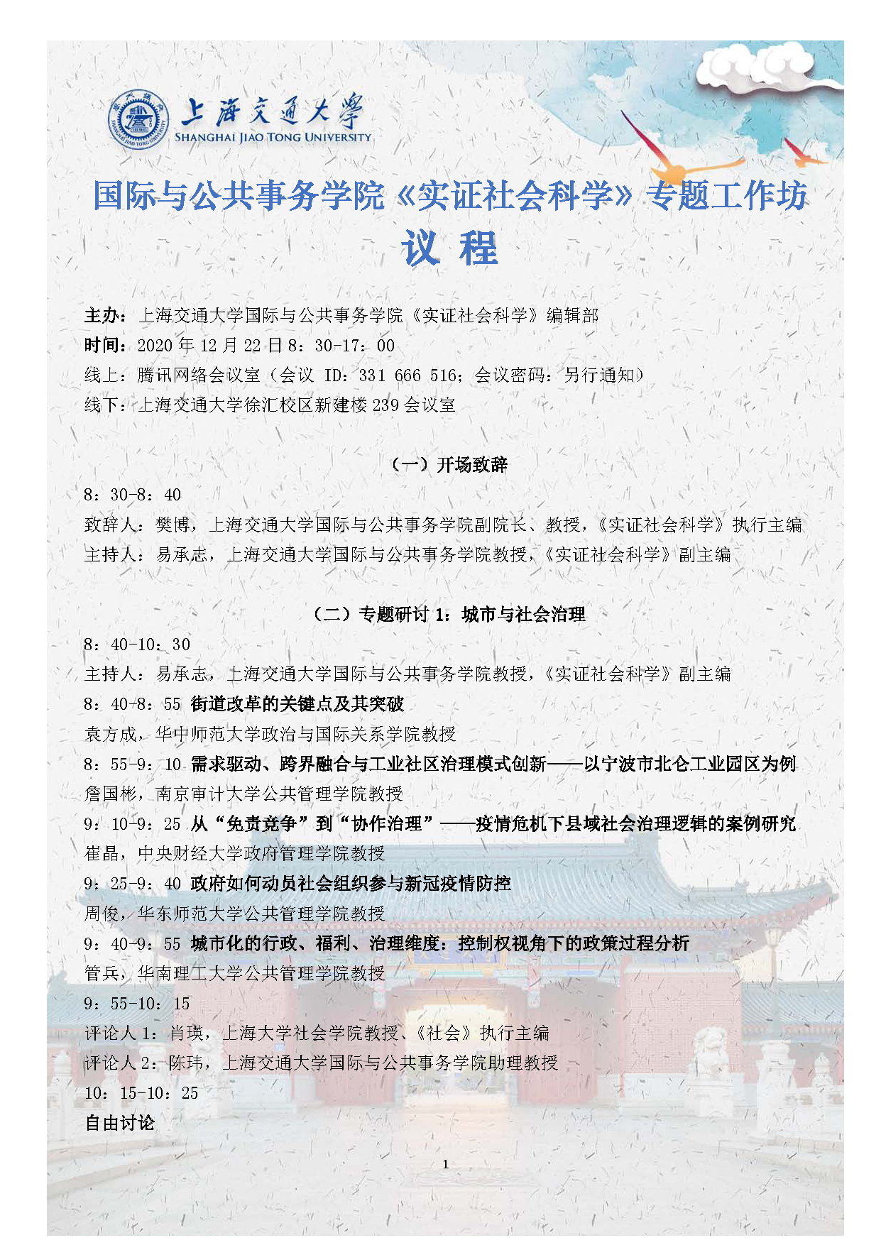 【会议议程】必赢中国官方网站“实证社会科学”专题工作坊