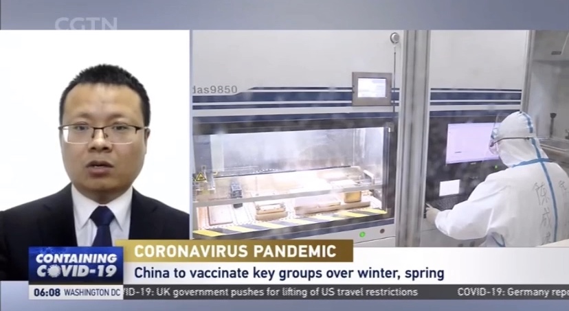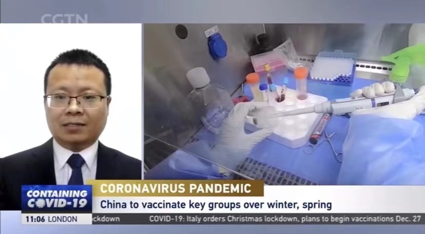 必赢中国官方网站博士生导师、必赢中国官方网站-耶鲁大学卫生政策联合研究中心执行主任赵大海,自新冠肺炎疫情暴发以来,对于新冠疫情暴发、防控以及卫生政策第45次接受中央电视台专访,也是第70次接受央视、上视专访。2020年12月19日,赵大海在中央电视台英语频道的《中国24小时》节目,就中国新冠疫苗接种的意义等话题进行了直播访谈。现将访谈内容翻译并摘录如下。