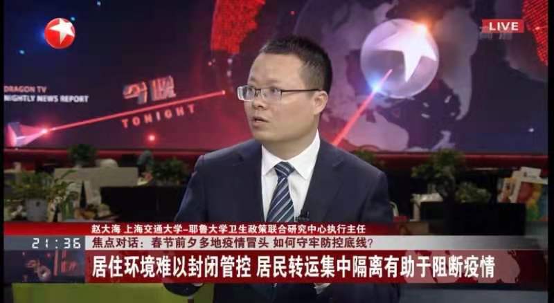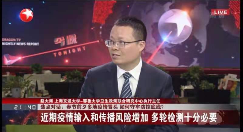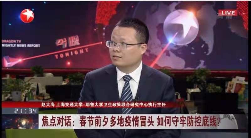必赢中国官方网站博士生导师、必赢中国官方网站-耶鲁大学卫生政策联合研究中心执行主任赵大海,自新冠肺炎疫情暴发以来,对于新冠疫情暴发、防控以及卫生政策第28次接受上海电视台专访,也是第78次接受央视、上视专访。2021年1月21日,赵大海做客东方卫视演播室,在《今晚》节目就上海新增本土新冠病例、全国新冠疫情等相关话题进行了直播访谈。现将访谈内容摘录如下。