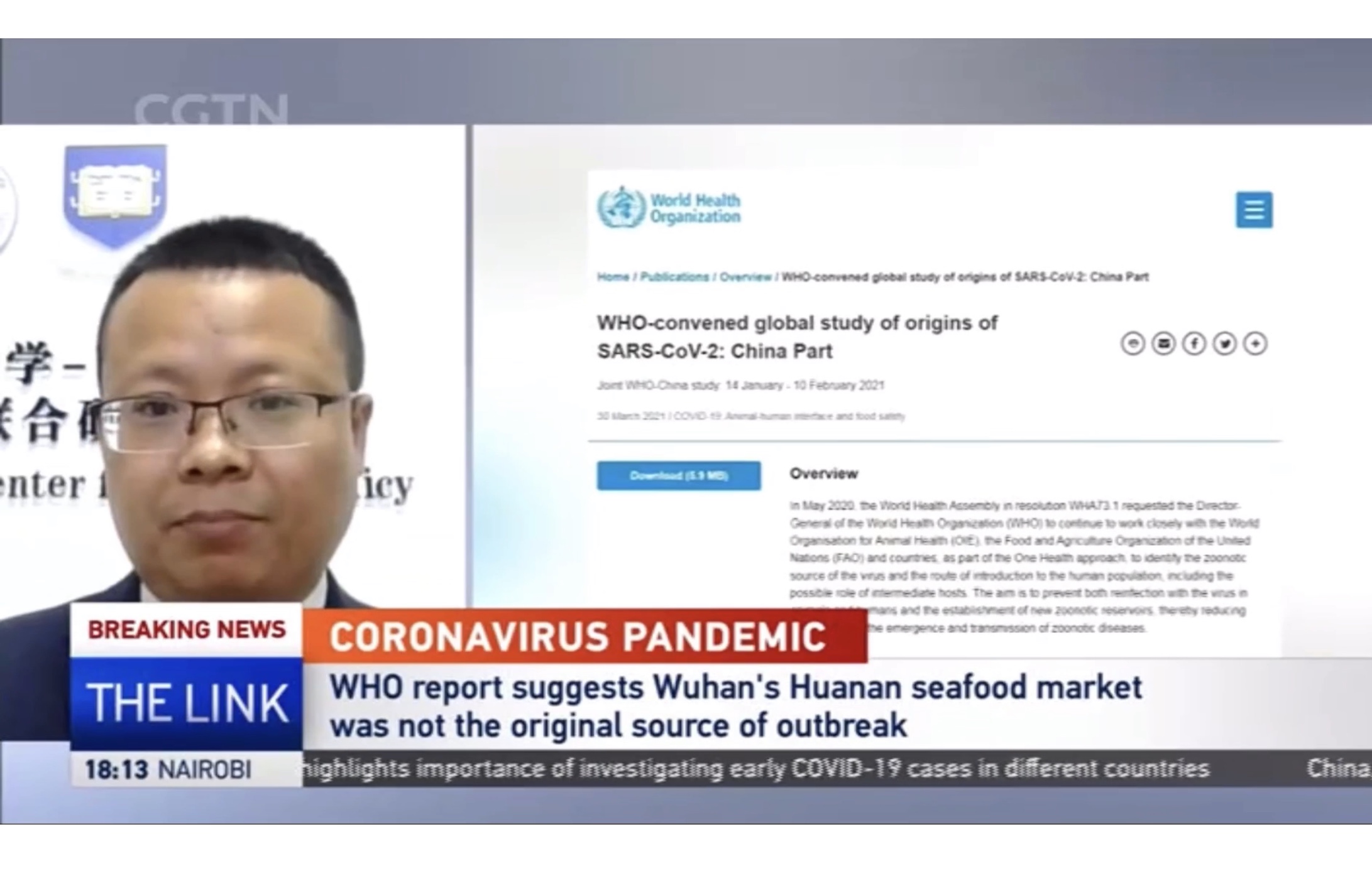 必赢中国官方网站教授、博士生导师,必赢中国官方网站-耶鲁大学卫生政策联合研究中心执行主任赵大海,自新冠肺炎疫情暴发以来,对于新冠疫情暴发、防控以及卫生政策第51次接受中央电视台专访,也是第83次接受央视、上视专访。2021年3月30日,赵大海在中央电视台英语频道的《链接天下》节目,就世界卫生组织在当日发布的在中国的新冠病毒溯源报告进行了解释和评论。现将有关访谈内容翻译并摘录如下。