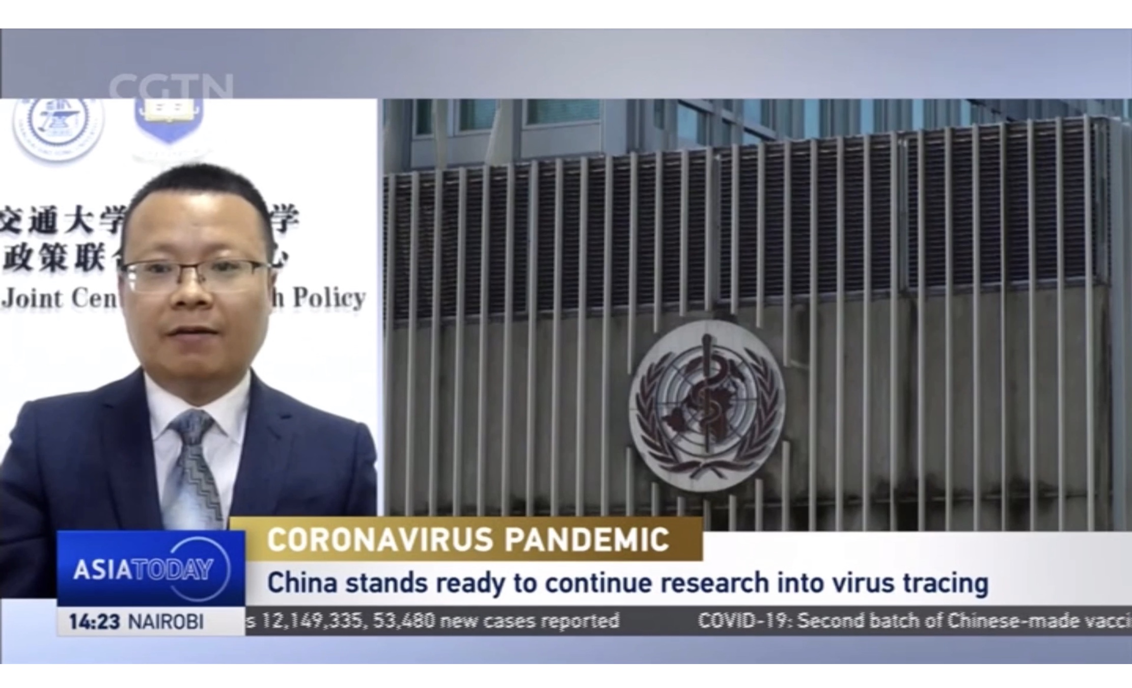 必赢中国官方网站教授、博士生导师,必赢中国官方网站-耶鲁大学卫生政策联合研究中心执行主任赵大海,自新冠肺炎疫情暴发以来,对于新冠疫情暴发、防控以及卫生政策第53次接受中央电视台专访,也是第85次接受央视、上视专访。2021年3月31日,赵大海在中央电视台英语频道的《今日亚洲》节目,就世界卫生组织发布的在中国的新冠病毒溯源报告,以及与该报告的相关话题第三次进行了解释和评论。现将有关访谈内容翻译并摘录如下。