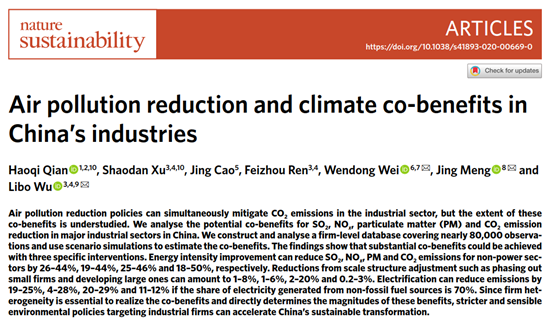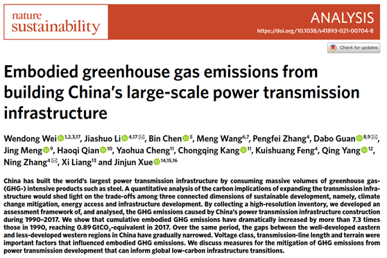 近日,我院魏文栋副教授与合作研究团队在可持续发展领域顶尖期刊连续发表多篇高水平研究论文,其中在《自然》子刊《自然-可持续性》(NatureSustainability)上先后发表了两篇研究论文,对我国电网基础设施建设的隐含温室气体排放、工业部门空气污染物与二氧化碳协同减排进行了深入研究,对于我国实现碳达峰、碳中和目标具有重要意义。