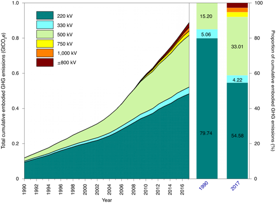 研究论文“Embodied GHG emissions from building China’s large-scale power transmission infrastructure”基于中国电网基础设施投入清单数据,采用过程分析与投入产出分析相结合的方法,分析了1990-2017年中国电网基础设施建设造成的隐含温室气体排放。结果表明,中国电网基础设施建设的累积隐含温室气体排放量比1990年大幅增加了7.3倍以上,2017年达到0.89 Gt CO2当量。电压等级、输电线路长度和地形是影响电网基础设施建设温室气体排放的重要因素。研究讨论了减缓电网基础设施产生温室气体排放的措施,这些措施可以为全球基础设施的低碳转型提供启示。魏文栋副教授、山东大学蓝绿发展研究院李佳硕研究员为该论文共同第一作者,山东大学蓝绿发展研究院李佳硕研究员、清华大学地球系统科学系关大博教授、山东大学蓝绿发展研究院张宁教授为该论文共同通讯作者。本研究所使用的数据集已于2020年10月在《自然》旗下期刊Scientific Data上发表,论文题目为“A 2015 inventory of embodied carbon emissions for Chinese power transmission infrastructure projects”,魏文栋副教授为该论文第一作者,山东大学蓝绿发展研究院李佳硕研究员为该论文通讯作者。