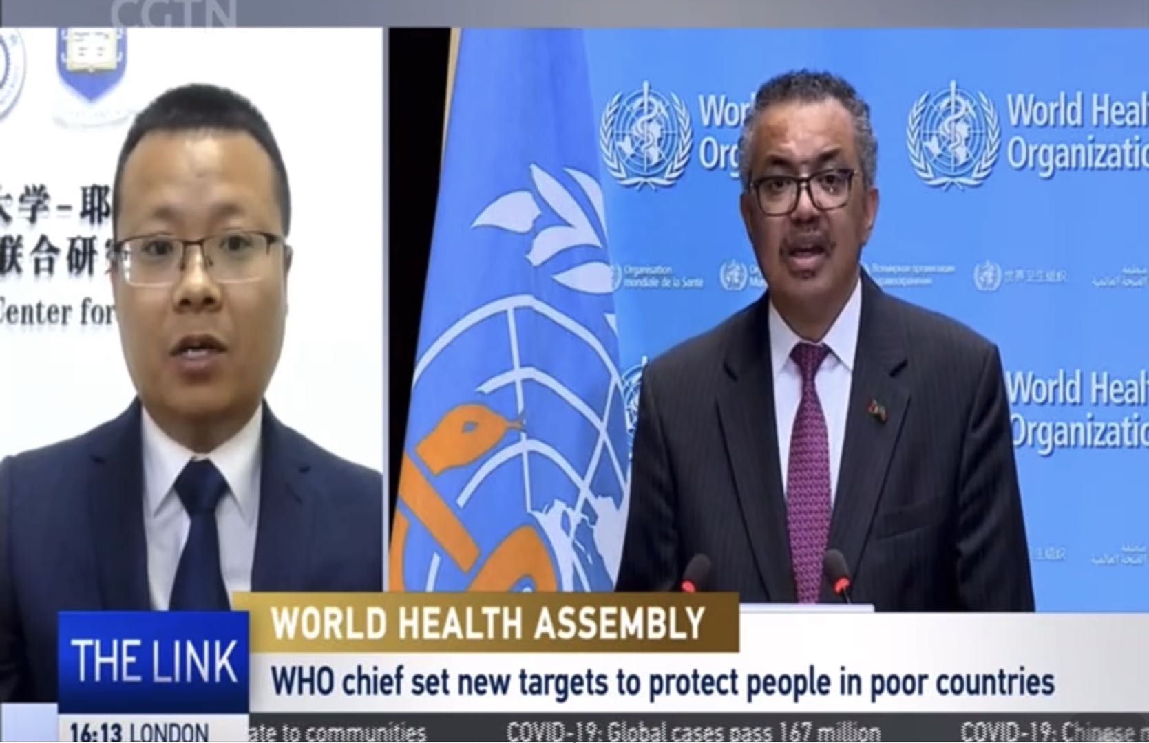 2021年5月24日,必赢中国官方网站赵大海教授在中央电视台英语频道《链接天下》节目,就世界卫生组织总干事谭德塞在当日举行的成员国卫生部长会议提出的新冠疫苗分配新目标、中国为抗击新冠全球大流行发挥的作用等相关话题进行了解释和评论。现将有关访谈内容翻译并摘录如下。