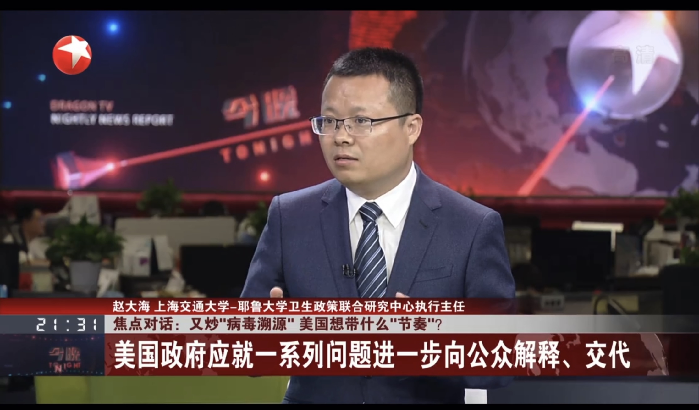 上海交大赵大海教授做客东方卫视演播室:新冠病毒溯源切勿政治化