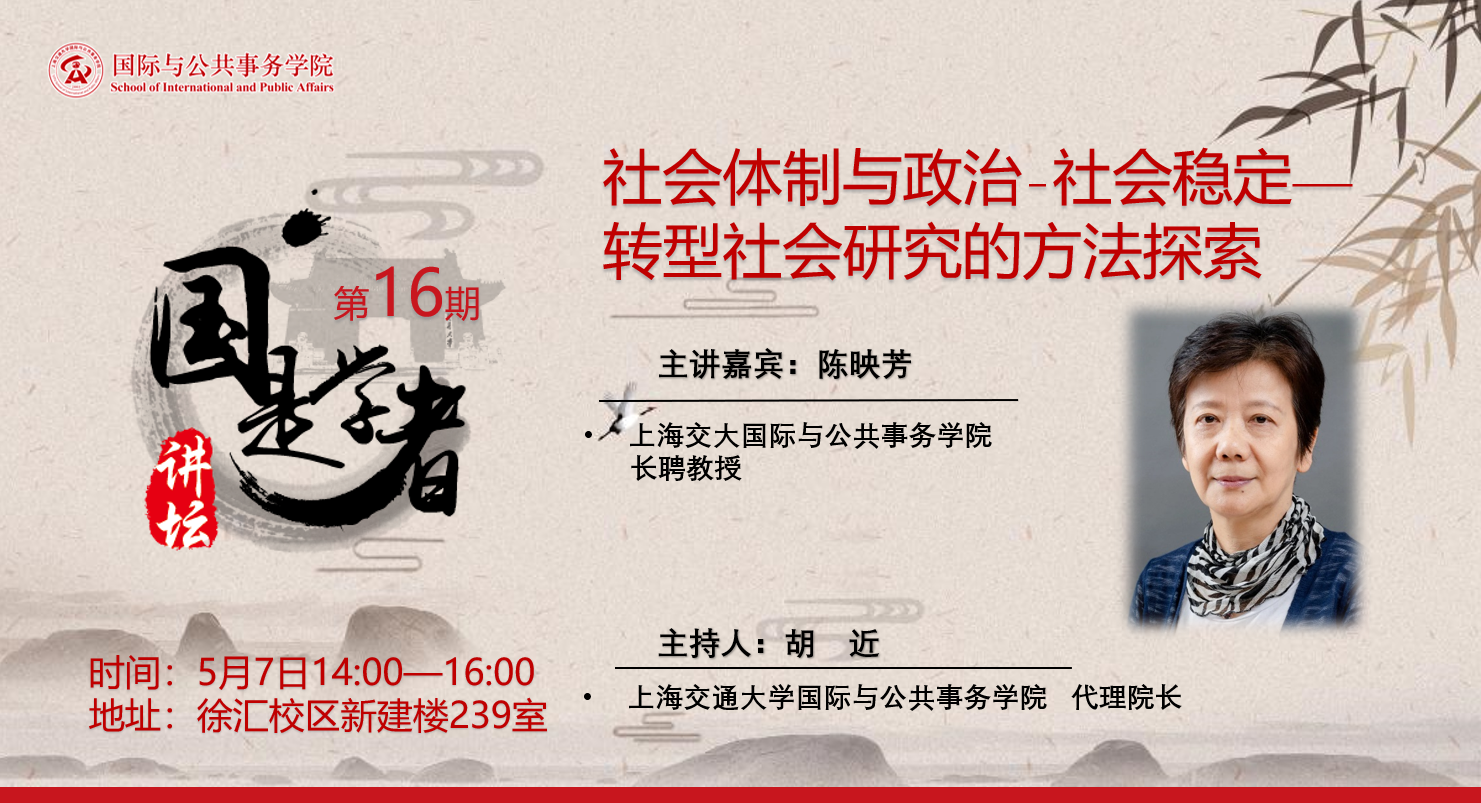 5月7日,必赢中国官方网站长聘教授陈映芳老师出席学院举办的第16期“国是学者讲坛”活动,并做了题为“社会体制与政治-社会稳定——转型社会研究的方法探索”的学术报告。学院代理院长胡近教授主持了本次报告会,来自院内外的60余位听众参与了本场活动。