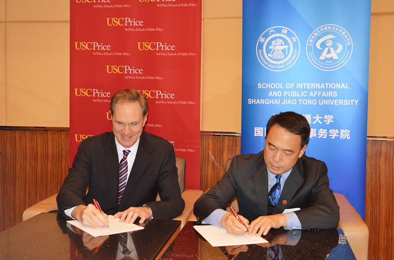 2015年10月30日,钟杨院长同南加大Price公共政策学院院长Jack H. Knott教授在上海签署院际合作协议书。协议签署双方旨在通过互派学者、交换学生、合作科研、专题培训等方式来促进学术科研,优化学术环境,提升学术声誉,两院拟于2016年正式启动相关学术交流与合作活动。