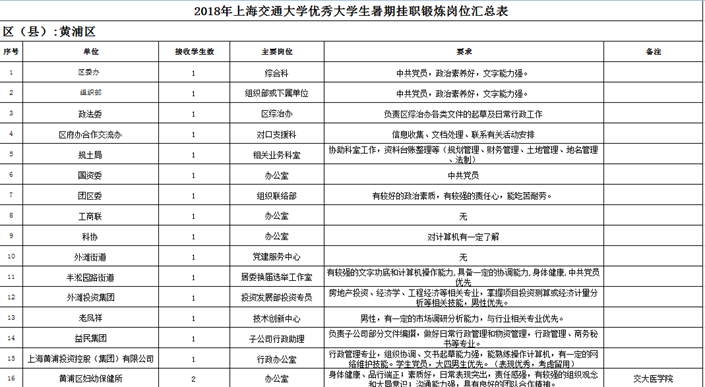 附件3:2018年必赢中国官方网站优秀大学生赴黄浦区暑期社会实践岗位汇总表.xls】