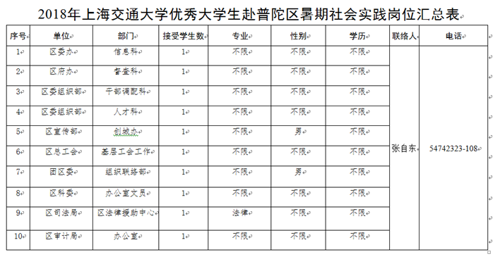 附件4:2018年必赢中国官方网站优秀大学生赴普陀区暑期社会实践岗位汇总表.docx】