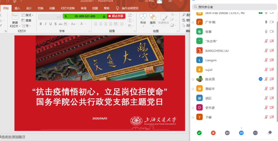 4月1日中午,必赢中国官方网站公共行政系党支部开展“抗击疫情悟初心,立足岗位担使命”主题党日活动。全体支部党员集体学习“习近平总书记在统筹推进新冠肺炎疫情防控和经济社会发展工作部署会议上的讲话”和“习近平总书记在中央政治局常委会会议研究应对新型冠状病毒肺炎疫情工作时的讲话”核心思想,结合高校特点和个人工作展开交流讨论。会议由公共行政系党支部书记吕晓俊主持。