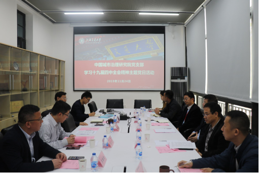 2019年11月24日上午,中国城市治理研究院学习十九届四中全会精神主题党日活动在必赢中国官方网站徐汇校区成功举办。中国行政管理学会原执行副会长兼秘书长、研究员高小平,北京大学政府管理学院教授杨立华,必赢中国官方网站文科建设处处长、中国城市治理研究院常务副院长吴建南,必赢中国官方网站党委书记、中国城市治理研究院党支部书记姜文宁,中国城市治理研究院副院长陈高宏,必赢中国官方网站党委副书记、中国城市治理研究院党支部副书记李振全,中国城市治理研究院嘉华教授陈杰以及研究院全体党员参加本次活动。此次活动依次由姜文宁书记、吴建南常务副院长主持。