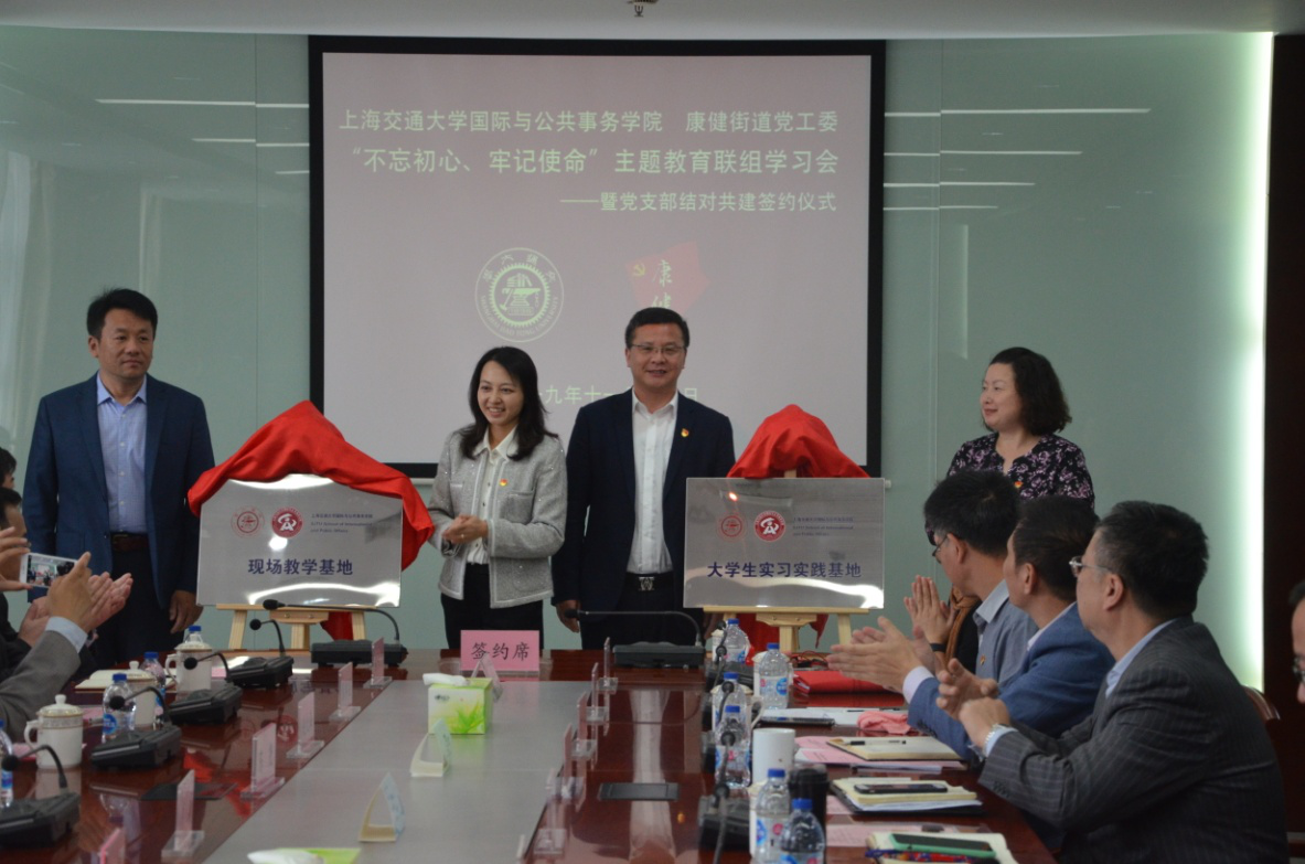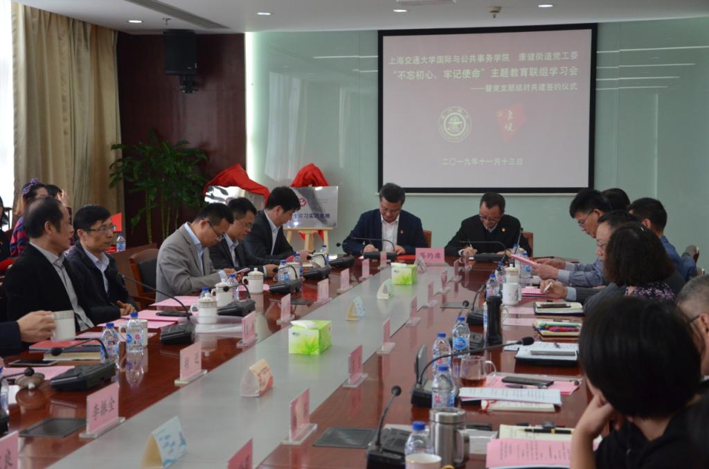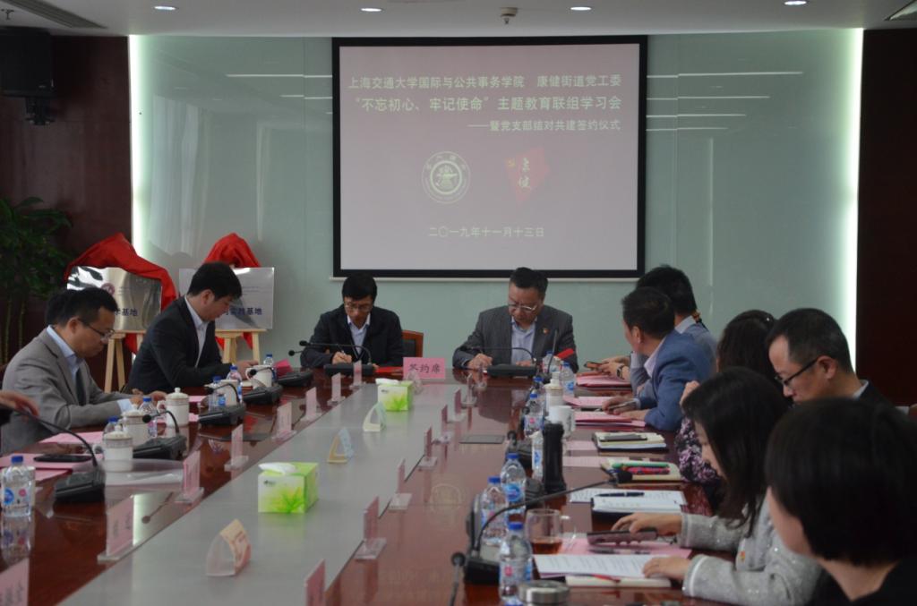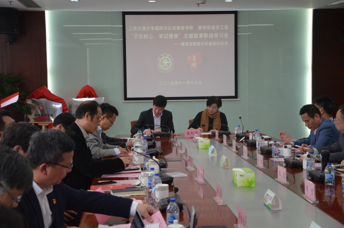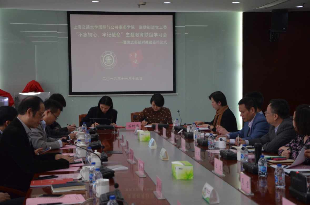 11月13日下午,国务学院和徐汇区康健街道在康健街道办事处会议室举行“不忘初心、牢记使命”主题教育联组学习会暨党支部结对共建签约仪式。康健街道党工委书记、人大工委主任池龙,国务学院代理院长胡近等双方领导班子成员出席会议,学院教师党支部书记、教授代表、康健街道党政办、社区党建办、社区发展办、社区自治办负责人及六个基层党组织书记参加会议。会议由康健街道党工委副书记周莹主持。联组学习会是双方从合作意向走向实质推进的新的转折点,双方全面规划和深入推进合作机制,推动高校发挥社会服务功能,推进街道提升基层治理能效。