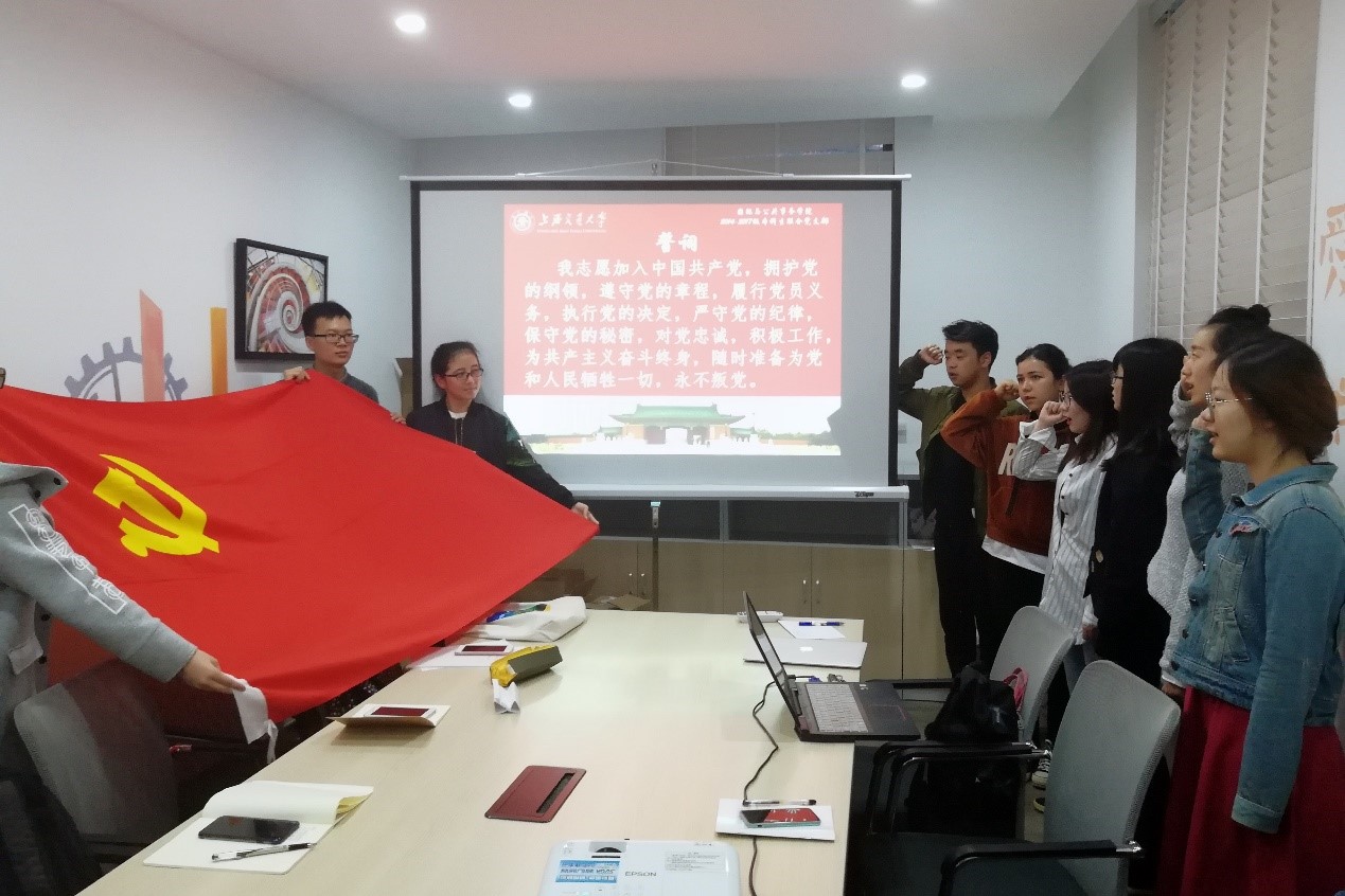 在会议的最后,新一批预备党员在党旗下庄严宣誓,表达了投身党的事业、积极实践、为国家和人民奉献自我青春的决心。本次党员发展转正会议与学院全体师生学习辅导会紧紧联系,老师高屋建瓴的讲解加强了党支部成员对于十九大精神更深入与全面的了解,支部大会上各成员的精彩发言也较好地体现了学生党员应具备的思想认识。新入党的学生党员们纷纷表示要牢记使命,努力提升自己的党性修养,时刻严格要求自己,养成良好的生活习惯和正派作风,更好地起到模范带头作用。