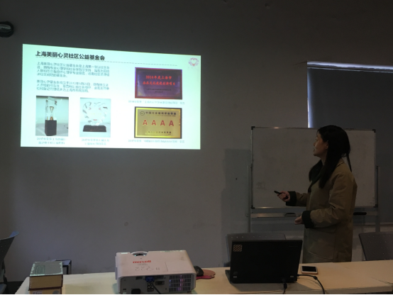 在座谈会上,上海联劝公益基金会传播负责人张楠雯、WABC无障碍艺途工作室虞仁杰、上海市美丽心灵社区公益基金会理事长马莉给大家详细介绍了所在社会组织的发展概况。张楠雯介绍了上海联劝公益基金会的发展历程和组织项目,分享了“一个鸡蛋暴走”项目开展情况,强调联劝在动员社会力量参与志愿活动的意义和价值。虞仁杰着重介绍了WABC无障碍艺途在艺术疗育方面的成效,用艺术的形式让特殊孩子能够实现自我价值,提升孩子们的自信心和对生活的热爱。马莉就上海市美丽心灵社区公益基金会为困境人群和志愿者提供心理学专业服务方面的工作做了详细介绍,其中“精灵书屋计划”、“螺蛳壳儿童空间改造”等标志性项目做得很精细,在社会上受到非常大的欢迎。