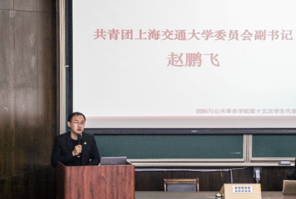 赵鹏飞代表校团委对大会的召开表示祝贺,并结合自身学生工作的经历,对团委学生会提出了两点期望,希望同学们能严格自身要求,成为表率和标杆;推陈出新,积极响应学生需求,组织受学生欢迎、让学生有获得感的活动。