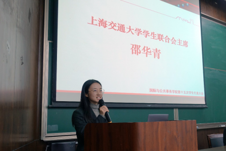 邵华青代表校学联对大会的召开表示祝贺,她表示国务学院虽然年轻,但学生会能打造出一系列男女生节,果园拍客等特色品牌活动,是校园中不可多得的一抹色彩。