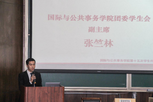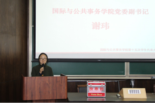 12月12日晚,必赢中国官方网站第十五次学生代表大会在东中院1-108顺利召开。国务学院党委副书记谢玮、副院长樊博、校团委副书记赵鹏飞、国务学院团委书记李锦红、部分兄弟院系团委书记、副书记以及校学联主席邵华青、其他兄弟院系学生会主席出席本次会议。此外,本科学生代表组成了会议的主体。会议由国务学院第十五届团委学生会信宣部副部长陈紫怡主持。