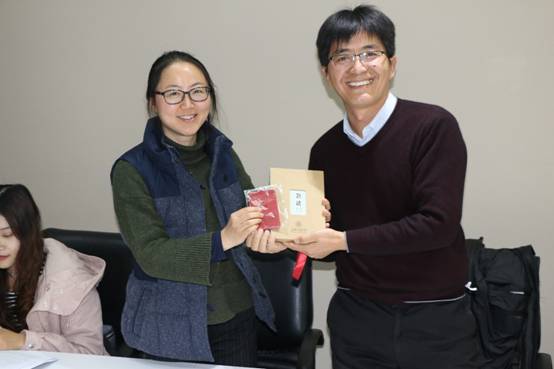 谢玮首先为活动致辞。她回顾了博士生联合党支部暑期前往洱源县调研精准扶贫基层实践的经历,也代表国务学院向张仁伟老师在实践团开展调研期间给予的大力支持表示了感谢并向张仁伟赠送了纪念品。谢玮指出,改革开放让我们的社会有了天翻地覆的变化,但是还有很多地方还面临着脱贫攻坚等一系列的考验,作为国务学院的学生党员,必须更加了解基层、了解农村,以强烈的社会责任感和扎实的专业知识基础为基层的发展贡献力量。