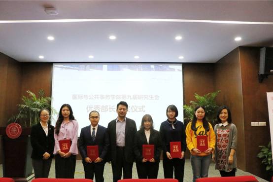 随后大会举行了第九届研究生会“优秀部长”颁奖仪式,对研会成员的辛勤付出表示感谢。