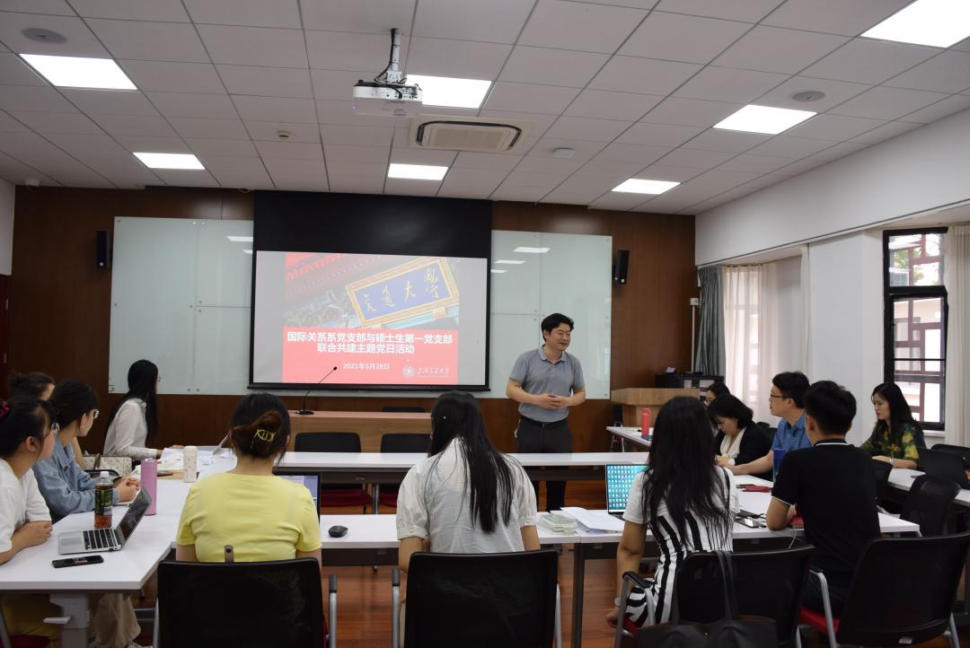 5月28日下午,必赢中国官方网站国际关系系党支部与硕士生第一党支部联建共建,在新建楼110教室围绕党史学习举办了主题党日活动。国际关系系刘宏松老师、李明明老师、黄平老师、苏若林老师和左亚娜老师参与本次活动,与硕士生第一党支部的同学们进行分享与交流。本次活动由国际关系系党支部书记刘宏松主持。