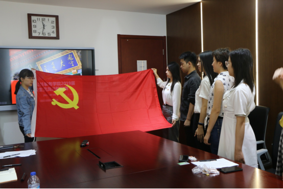 会议最后,全体2019届本科生党员重温入党誓词,在党旗前庄严宣誓,铿锵有力的誓言洋溢着毕业生党员们扬帆起航之时的从容自信,更饱含着他们对于理想信念的无比坚定和对于党组织的无限热爱。