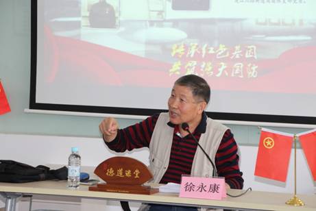 徐永康生动地回顾了自己少年从军、艰苦练习的经历。徐永康老师年轻时刻苦钻研飞行技术,成为长春空军航空第一预备学校最年轻的战斗机教官,为建设强大的人民军队做出巨大贡献,为中国航空事业的发展奉献了自己的青春。他也对当代大学生寄予希望,希望新一代大学生能刻苦学习,掌握高科技知识,成为科技领域的精英,为国防工业的现代化添砖加瓦,同时,也要在祖国需要的时候成为保卫祖国的忠诚战士。