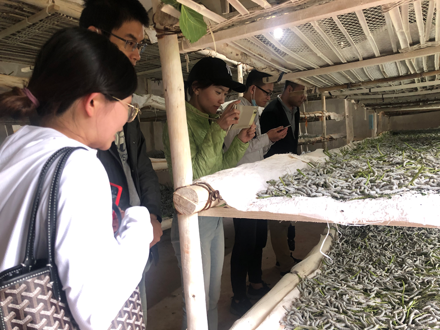 之后,草海子社区领导带领实践团成员参观了村级集体经济示范点和蚕纱合作社,解答了实践团提出的关于村民与企业共建产业,驻村干部带动的产业输入等问题。
