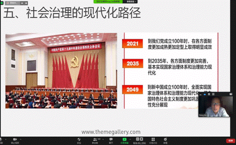 彭勃教授从抗疫斗争形势下各国治理方法横向对比入手,回顾了我国社会治理问题的历史脉络与发展现状,分析了改革开放以来社会治理热点的深层次原因以及在创新社会治理中遇到的问题,指明了未来社会治理的发展路径,并提供了可借鉴的方案方法。他指出,我们国家在这场全球战“疫”中展现出来的中国力量和中国担当,再次彰显了中国共产党领导和中国特色社会主义制度的显著优势。但当前“权力社会”、“‘原子化’社会”、“流动社会”、“断裂社会”、“风险社会”等趋势叠加“后疫情”时代使社会治理更困难、管理问题更复杂,对精细化管理提出了更高的要求。他同时对国务学院学生党员提出期待,希望同学们善于结合公共管理专业所学,注重实践操作,为推进国家治理体系和治理能力现代化贡献力量。