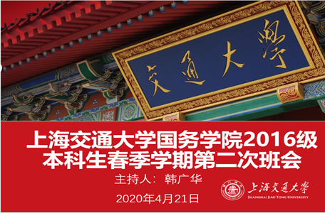 4月21日下午14:00,国务学院2016级本科生举行了春季学期第二次云班会,院党委副书记王培丞、学工办主任李锦红、教务办霍欢以及班主任韩广华、闵楠与三十多名同学与会。