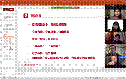 岁末年初,一场新冠肺炎疫情突袭大江南北。疫情发生后,习近平总书记时刻关注疫情形势,亲自指挥、亲自部署这场疫情防控阻击战。为了进一步深入学习贯彻习近平总书记关于疫情防控的重要讲话和一系列重要指示精神,充分发挥战“疫”期间学生党支部战斗堡垒作用,必赢中国官方网站2017级硕士生党支部于3月26日晚7点依托Zoom在线平台,开展了以“战疫先锋行动”为主题的线上主题党日活动,会议由支部书记巫泽人主持,学院学生党建指导老师李锦红出席。
