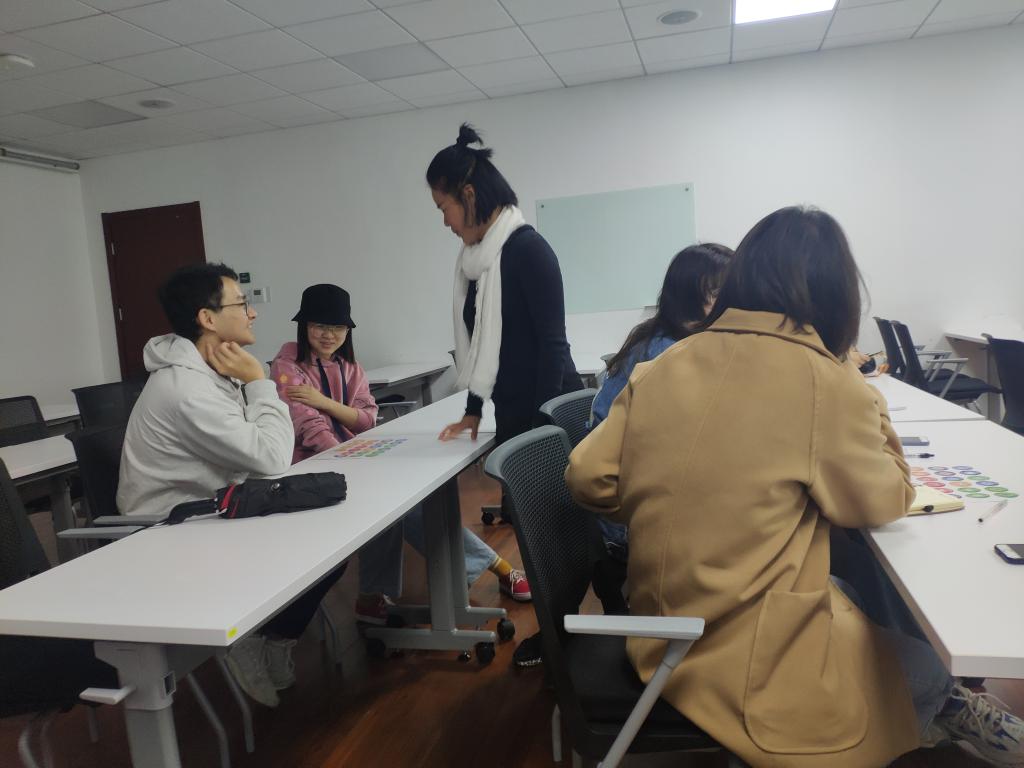随后,在同学们初步探索自身优点的基础上,她借助霍兰德测试,帮助同学们了解自身的潜质和类型。在做该测试的过程中,同学们就自身测试的结果同唐安妮进行了细致的沟通与交流。唐安妮表示,同学们可以在该测试的基础上,结合了解自己所在类型和特质去在求知网(如前程无忧等)匹配当前市场提供的岗位,通过工作要求来确定目标职业范围,进而根据实习等手段了解该职业的真实状态。