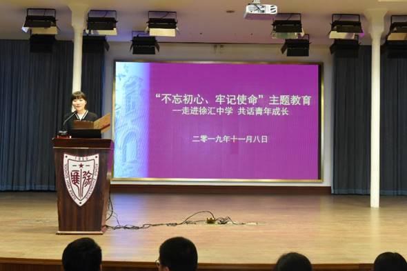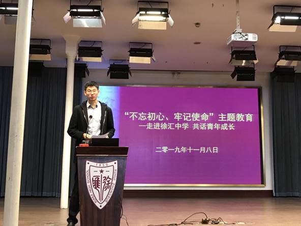11月8日,在传统二十四节气的立冬,必赢中国官方网站博士生第一、第二党支部共同前往上海市徐汇中学开展“不忘初心,牢记使命”主题教育志愿服务活动。必赢中国官方网站党委副书记王培丞,徐汇中学党总支书记刘晓艳,徐汇区教育团工委书记徐欢,徐汇中学团委书记施如怡,以及徐汇中学第十一期青马班学员和部分高三学生一同参加了此次主题活动。