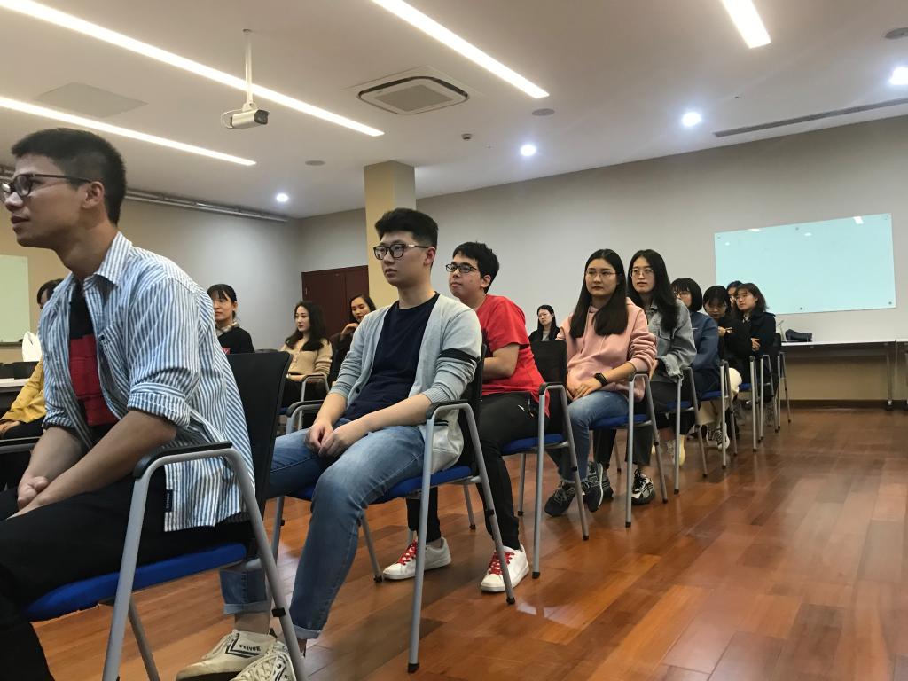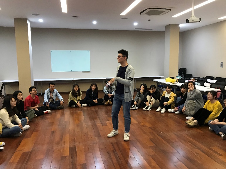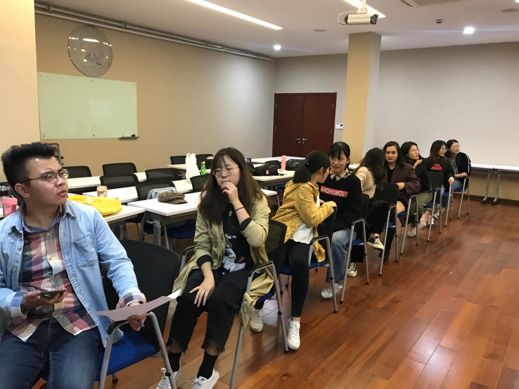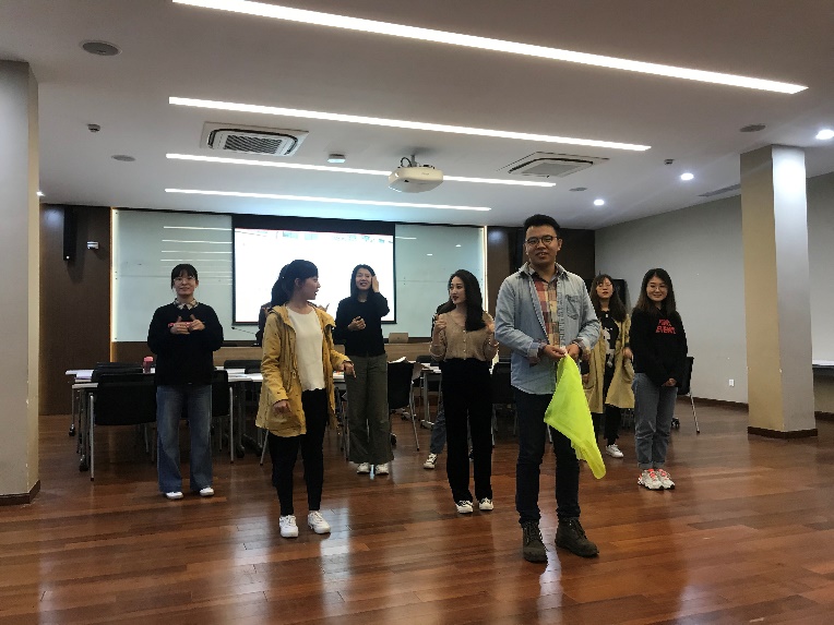 活动伊始,培训师给大家进行了“大风吹”的暖场破冰小游戏。同学们彼此之间更加熟悉,场内的气氛也变得活跃起来,便于投入于接下来的活动之中。