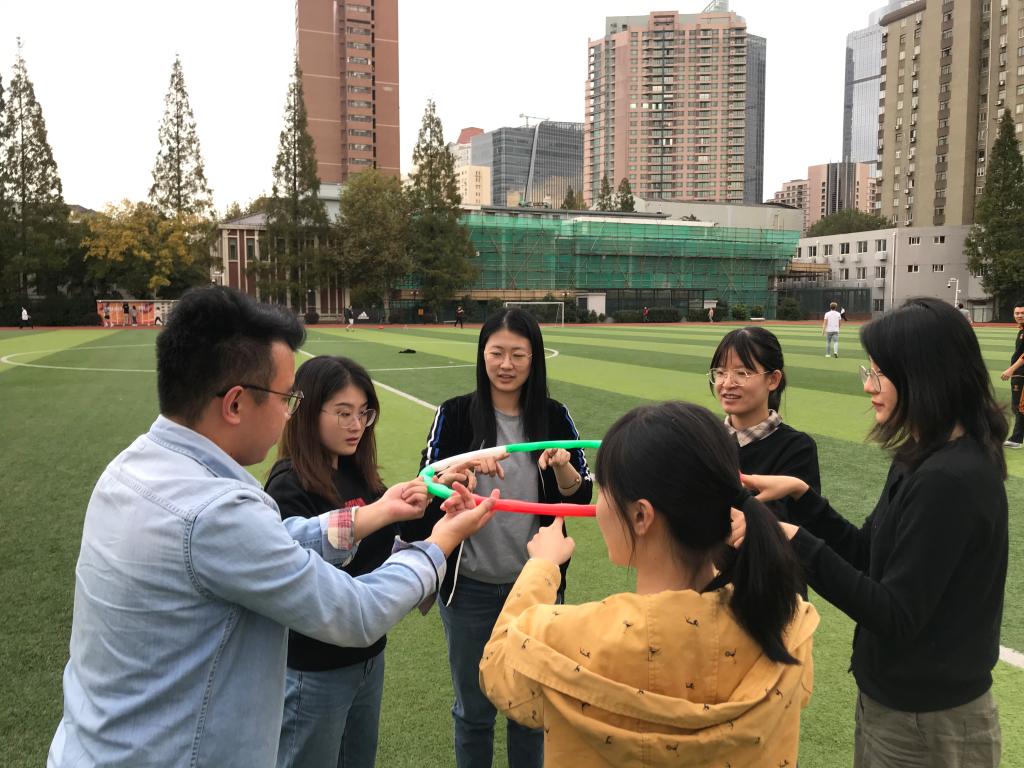 团队组建好之后,培训师给大家带来了”驿站传书“、”齐眉圈“这两个内容充实、形式多样的团队活动。在“驿站传书”活动里,大家面对层出不穷的规则沉着面对,相互配合,认真思考,各个团队都想出了极具创意的方法来完成“传书”任务,并取得了不错的成绩。“齐眉圈”则让每个团队都进行了脑力和体力的双重比拼。活动过程中,现场笑声不断,同学们为了使自己的团队成绩更好,都在齐心协力,互相鼓励。