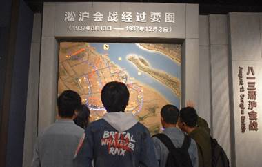 同学们首先集体抵达上海淞沪抗战纪念馆进行参观。纪念馆坐落于昔日上海军民抗战的主战场——宝山境内,丰富的陈列品反映出上海军民用血肉之躯为捍卫国家的领土完整和民族尊严而奋勇杀敌的悲壮历史。纪念馆以“血沃淞沪”为主题,共涵盖了“中国抗日战争的爆发”、“八一三淞沪会战”、“上海抗日救亡运动的高潮”等七个部分的展览。