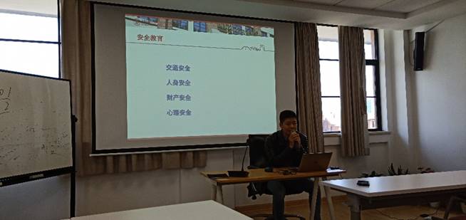 谢培文给新生们做了安全教育,从交通安全、人身安全、财产安全、心理安全四个方面提醒同学们在交大要注意身心安全,同时通过视频短片向同学们放映了一些交大内发生交通安全事故的片段,警醒同学们在校园内出行时需要务必要注意来往车辆。同时他也借此机会和同学们简单介绍了保险相关事宜,建议同学们在购买了居保的同时也购买商保,为在交大四年的学习生活提供一份安心的保障。